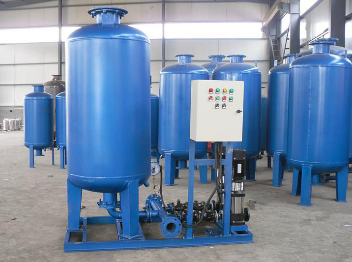 1、定壓補水裝置節約用地 普通落地式膨脹水箱的伸縮容積靠膠囊的收縮擴張來實現,罐體的有效可利用容積僅為罐體總容積的20%~30%,罐體比較龐大,而HGPZJZ型穩壓膨脹機組采用特殊技術措施,把膨脹部分和氣壓穩壓部分分開設置,可使系統的絕大部分膨脹量儲存于隔離的膨脹器中,設備的體積利用率可達90%以上,因此整機體積、高度大為縮小,節約用地50%~60%。便于設備布置、安裝,又節約了機房的土建成本。